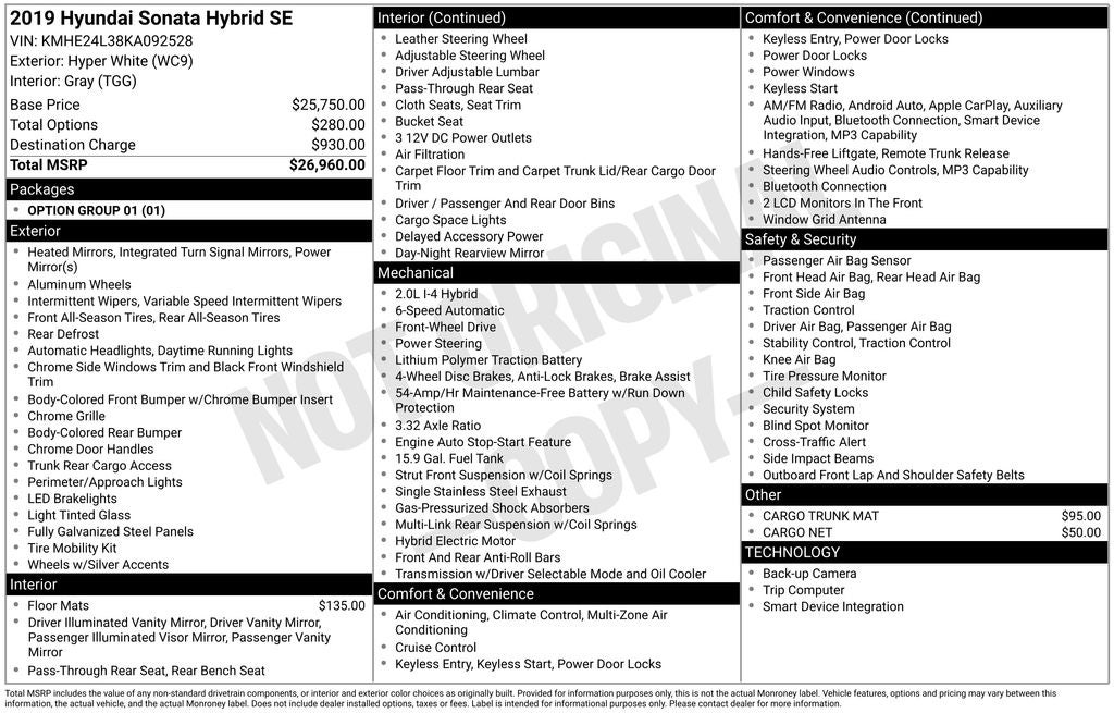 - Vehicle Name: Hyundai Sonata Hybrid