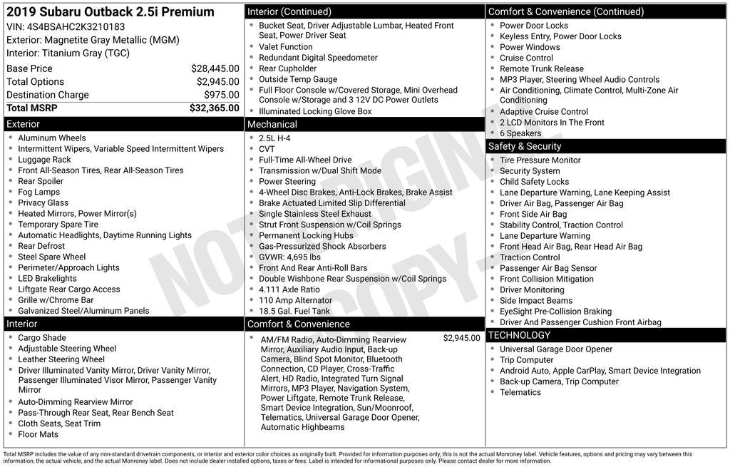 - Vehicle Name: Subaru Outback