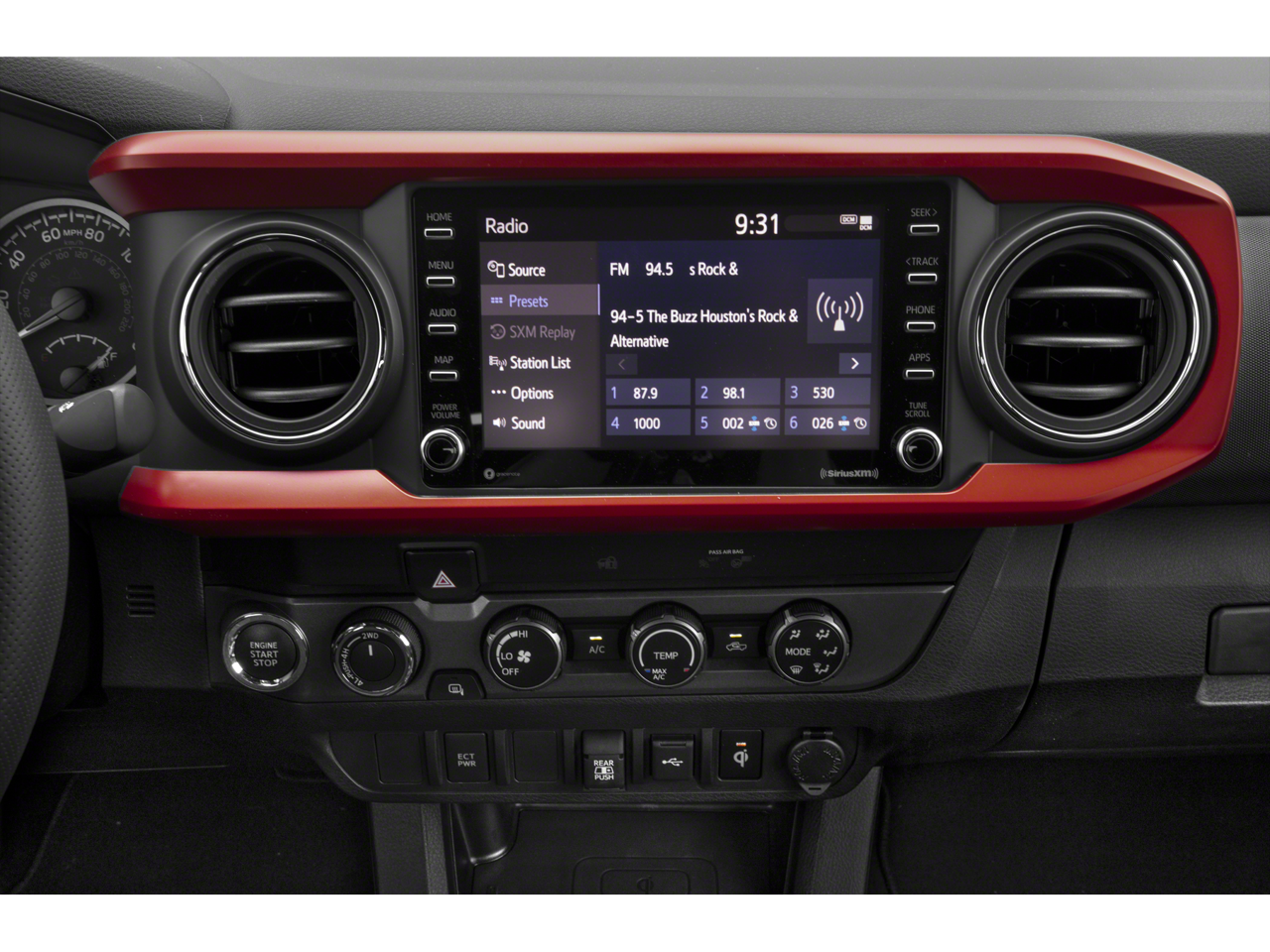Midnight Black Metallic TRD Sport V6 4WD 6-Speed Automatic 3.5L V6 PDI DOHC 24V LEV3-ULEV70 278hp Back Up Camera, Bluetooth®, Clean History Report, Alloy Wheels, Audio Controls on the Steering Wheel, Bedliner, Clean Cloth Interior, Cruise Control, Dual Climate Control, Proximity Keyless Entry, Push Button Start, Rear View Camera, Satellite Radio, Side Air Bags, a Clean, One Owner Carfax, 4WD, 120V/400W Deck Mounted AC Power, 6 Speakers, ABS brakes, AM/FM radio: SiriusXM, Apple CarPlay/Android Auto, Auto High-beam Headlights, Auto-dimming Rear-View mirror, Brake assist, Bumpers: body-color, Color-Keyed Overfenders, Driver door bin, Dual front impact airbags, Dual front side impact airbags, Electronic Stability Control, Engine Immobilizer, Exterior Parking Camera Rear, Front Bucket Seats, Front fog lights, Front wheel independent suspension, Illuminated entry, Knee airbag, Leather Shift Knob, Occupant sensing airbag, Overhead console, Panic alarm, Power driver seat, Power Sliding Rear Window w/Privacy Glass, Power steering, Radio: AM/FM/HD Radio, Rear step bumper, Remote keyless entry, Security system, Smart Key w/Push Button Start, Telescoping steering wheel, TRD Sport Package, Wheels: 17 x 7.5J Machined Alloy.
