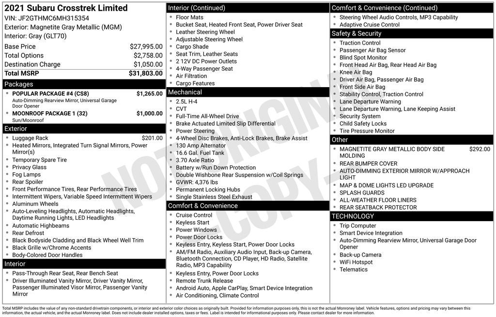 - Vehicle Name: Subaru Crosstrek