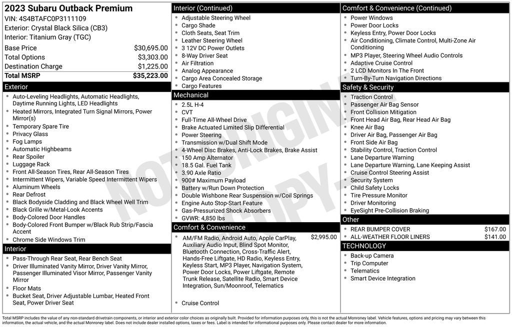 - Vehicle Name: Subaru Outback