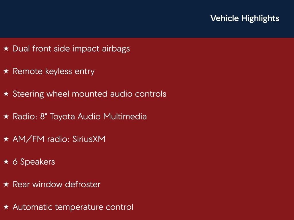 - Radio: 8in Toyota Audio Multimedia