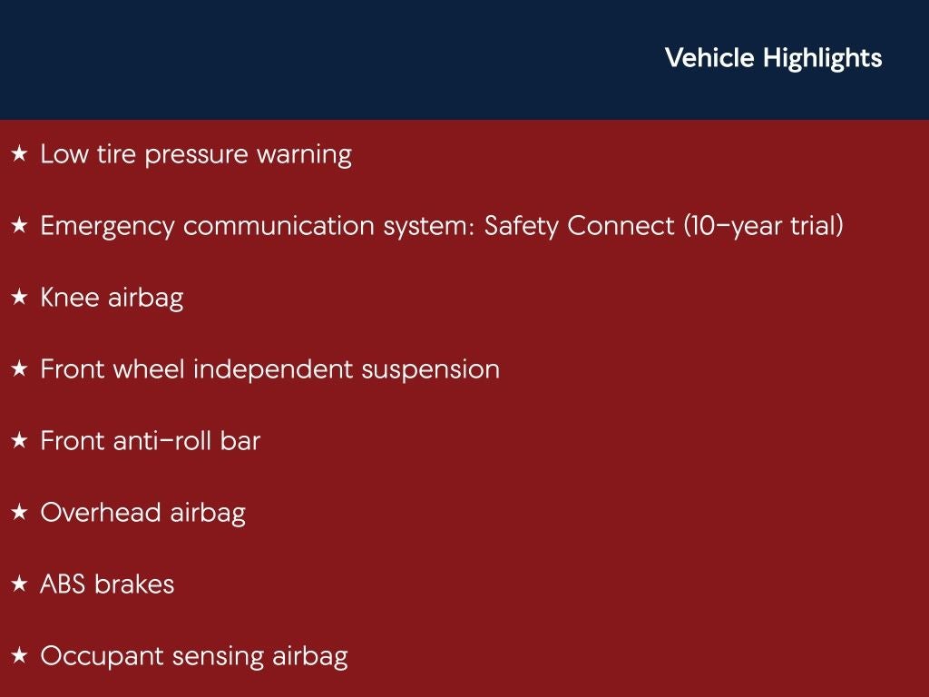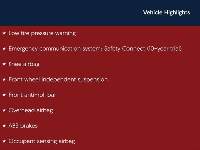 - Emergency SOS Capable Safety Connect (10-year trial) vehicle integrated emergency SOS system