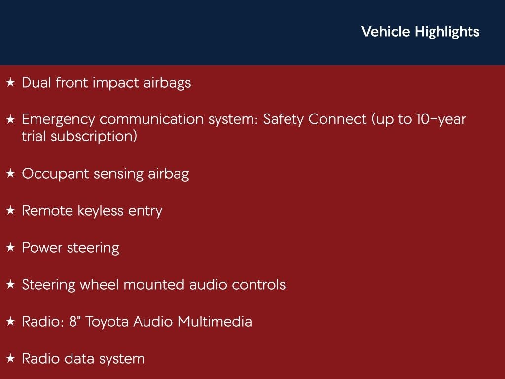 - Radio: 8" Toyota Audio Multimedia