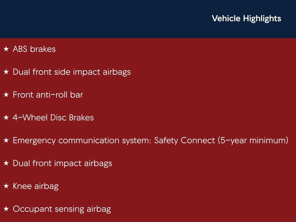 - Emergency SOS Capable Safety Connect (5-year minimum) vehicle integrated emergency SOS system